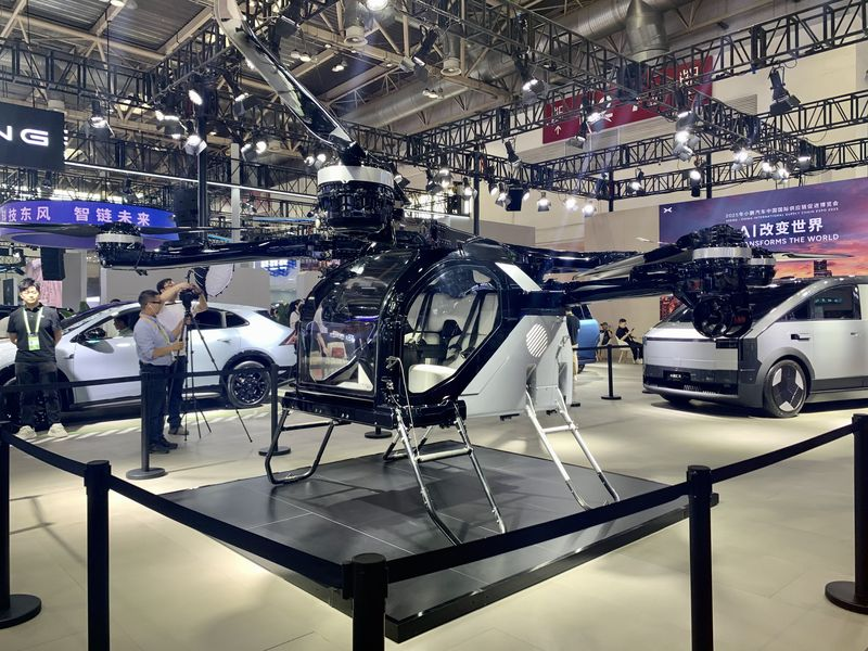 小鹏汇天的 “陆地航母” 则以 “分体式设计” 吸引眼球 —— 飞行舱可与地面底盘分离,既具备汽车的道路行驶能力,又能实现垂直起降。工作人员透露,这款全球首款大规模量产的分体式飞行汽车将于 2026 年上市,其搭载的自研图灵 AI 芯片,可同时适配飞行汽车、智能机器人等多场景,算力密度较行业平均水平提升 50%。