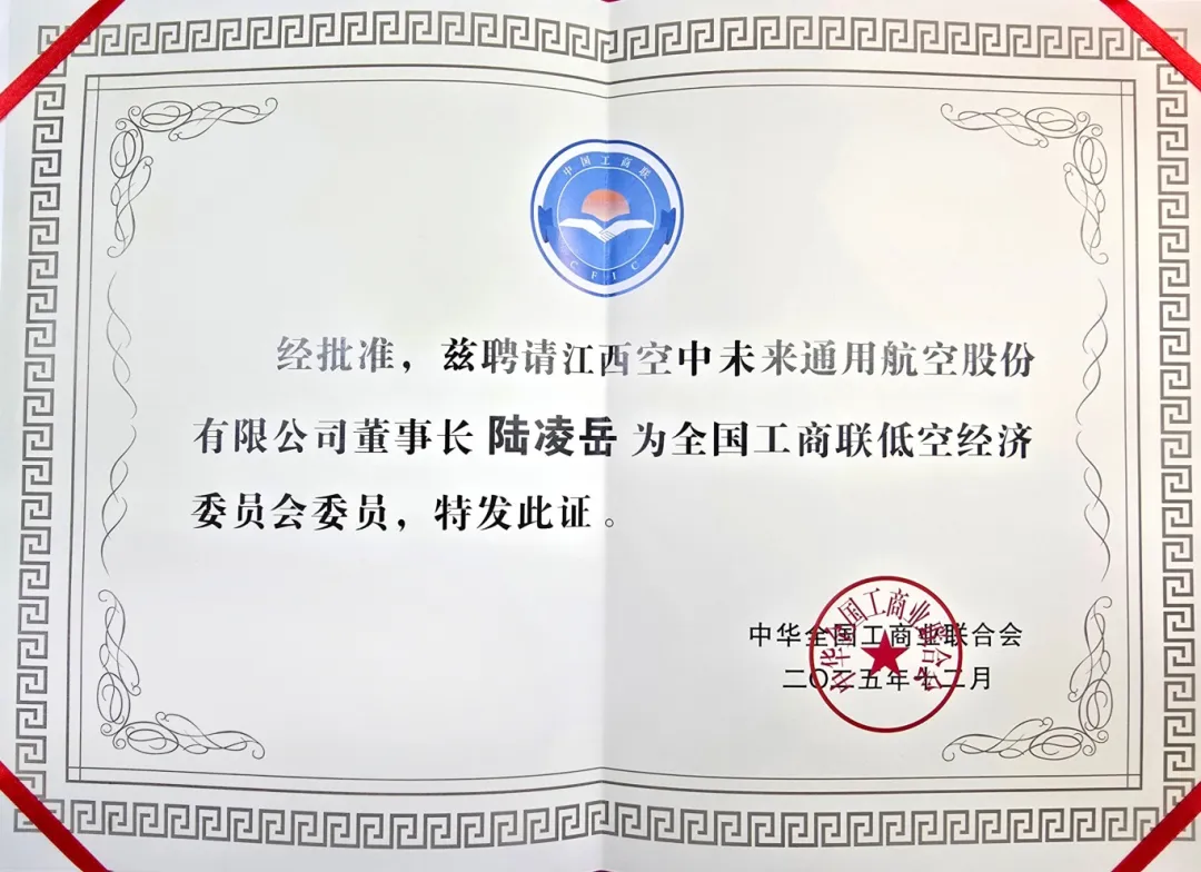 江西低空经济领域的示范性企业——江西空中未来通用航空股份有限公司(简称“空中未来”)受邀参会。公司董事长陆凌岳凭借其在低空经济领域的长期深耕、显著实践成果与广泛行业影响力,在本次大会上成功当选为全国工商联低空经济委员会创会委员。这一任命,不仅是对陆凌岳董事长个人卓越贡献与领导力的权威认可,更是对空中未来航空长期以来在推动产业创新、践行社会责任方面所取得成就的高度肯定。 自成立以来,空中未来航空始终秉持“探索低空领域前沿应用,革新行业发展”的使命,专注于通用航空商业模式的创新与突破。公司以“让飞机驶进大众生活”为愿景,致力于推动航空消费场景的升级,让飞行梦想触手可及。通过扎实的业务布局,公司已构建起覆盖广泛、运行高效的低空服务体系,其核心飞行基地坐落于共青城与杭州,并在南昌、鄂州、吉安、景德镇、赣州、上饶、抚州等多个城市设立了辅助运行基地,形成了强大的网络支撑能力。基于其卓越的实践,公司已被收录至中国航空学会编纂的《2024低空经济场景白皮书》,成为行业内的典型案例,充分彰显了其在技术创新与规模化运营方面的综合实力。